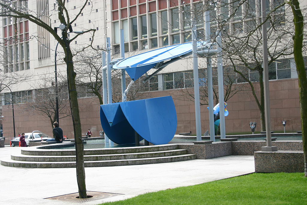 Waterspheres Nine patina-finished aluminum spheres up to 1.5 meters in diameter comprise the focal sculpture for the central axial pool in this water reclamation park. After spraying off the underside of the spheres the water is collected and directed by various pools and channels down the hillside to sedimentation ponds and a bio-filtration marsh in …